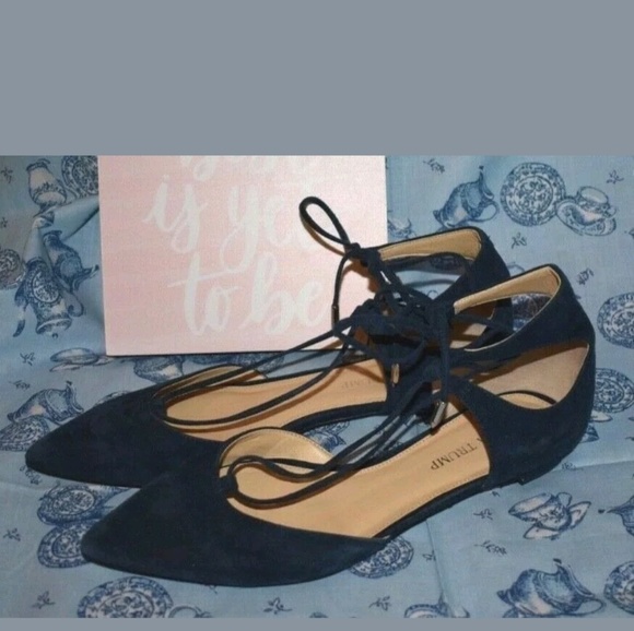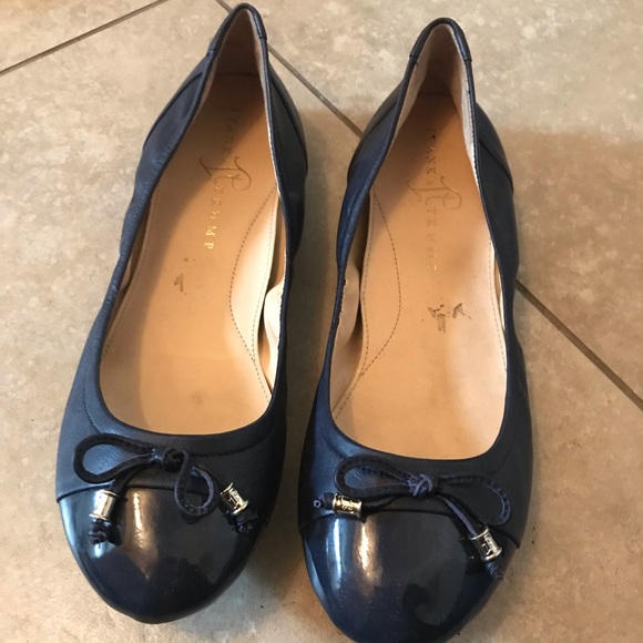 Ivanka Trump Ballerina Blue Leather Patent Leather Toe Cap Bow Flats Shoes 8 5m Ebay